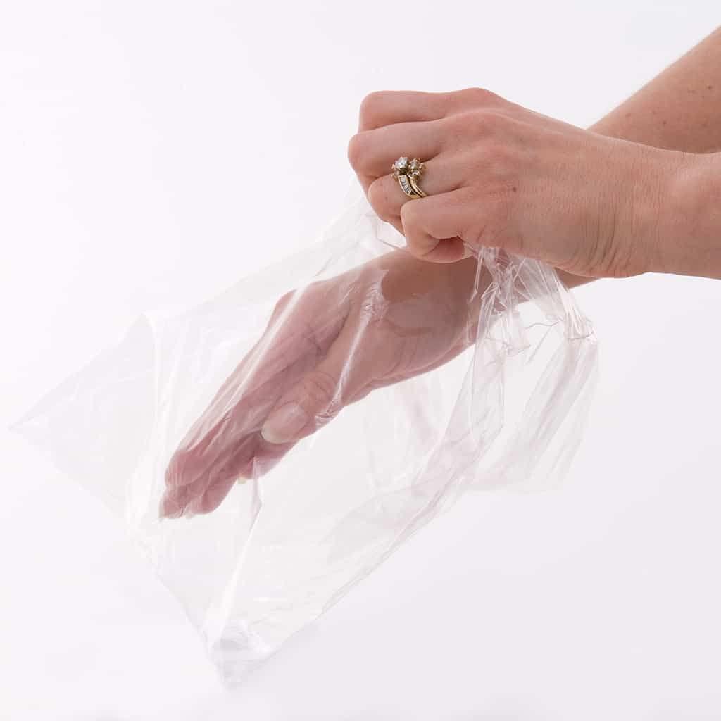 Devoted to Quality and Safety. All Therabath products are thoughtfully made in the United States and trusted by industry professionals. This set contains 100 disposable plastic liners measuring 9 x 15 in., which is an extra-large size that fits most hands and feet.